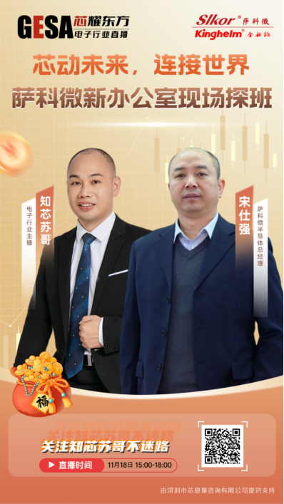 3、今天下午,GESA芯耀东方探班SLKOR公海555000JC线路检测中心新办公室,知芯苏哥与宋仕强探讨“芯动未来 连接世界”。感兴趣的朋友可直接扫码进入直播间,15:00 — 18:00,我们不见不散哟!