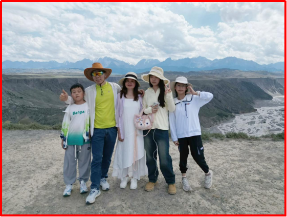 江玉芷一家五口旅游留影
