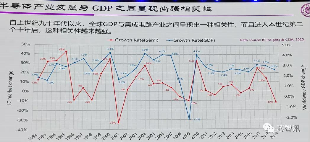 国际上的相关的研究也显示,自上世纪九十年代以来,全球半导体产业发展和GDP之间呈现出强相关性,特别2010年以来,相关性系数达到0.9以上。