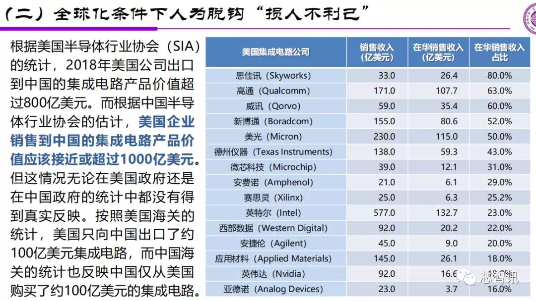 对于那些鼓吹“中美脱钩”的言论,魏少军教授认为,全球化条件下,人为脱钩,是“损人不利己”。