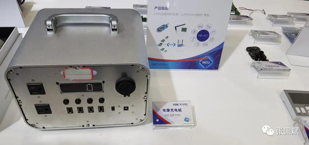 除此之外,现场还展示了华大MCU在电摩充电桩、PLC、无叶风扇控制、便携式对讲机方面的各种方案,这些方案需要高可靠性MCU,这也说明华大MCU的各种场景适用性非常好。华大半导体的MCU已经打进了多个新领域。“这主要得益于忠实且优秀的合作伙伴带来了更多的行业客户与应用,以及客户对华大MCU高可靠性品质的认可。”他解释说。