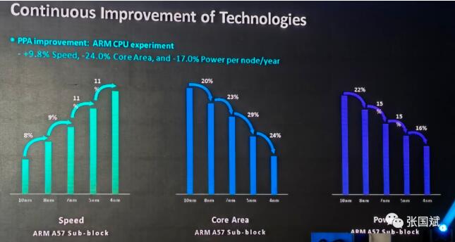 从他公布的数据看,每一代技术在速度、面积和功耗上都后明显的改进。