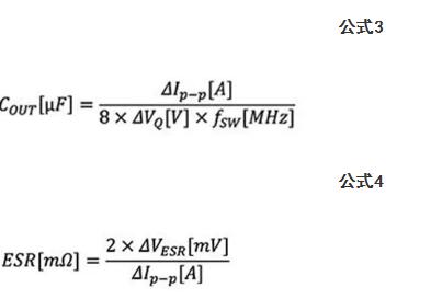 同样,如果已指定输出端的电压纹波最大峰峰值,则分别通过公式3和公式4即可确定大容量电容器的电容和ESR: