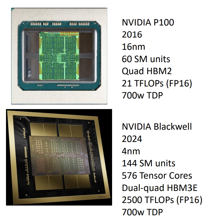 一颗如NVIDIA H100的GPU拥有18,432个CUDA核心,相当于上万个小计算单元同时吃数据。
