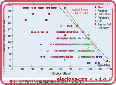 ADC芯片朝着减小功耗的方向前进,以功耗、分辨率、采样速率、噪音作为确定品质因数的依据;这一挑战在移动通信领域应用中尤为突出。