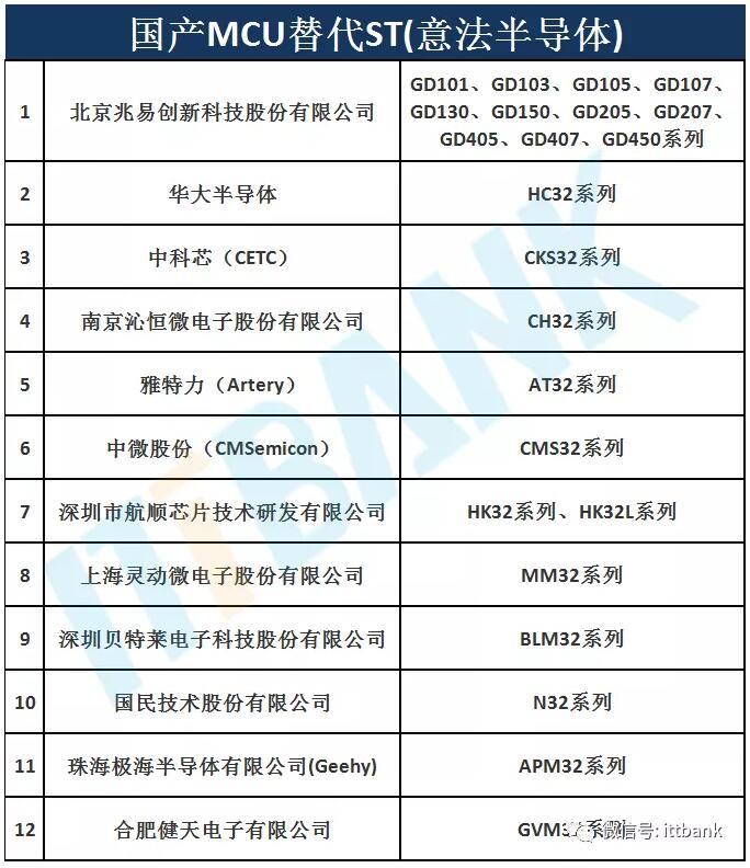 盘点缺货又涨价的ST MCU的国产替代(附具体厂家及其具体MCU型号)