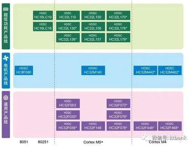 有国企背景的HC32系列基于ARM Cortex-M0+及Cortex-M4内核,产品包括超低功耗应用的HC32L系列和针对电机应用市场的HC32M系列,针对通用市场的高性价比HC32F系列,与ST同型号产品管脚兼容,可以直接替换。