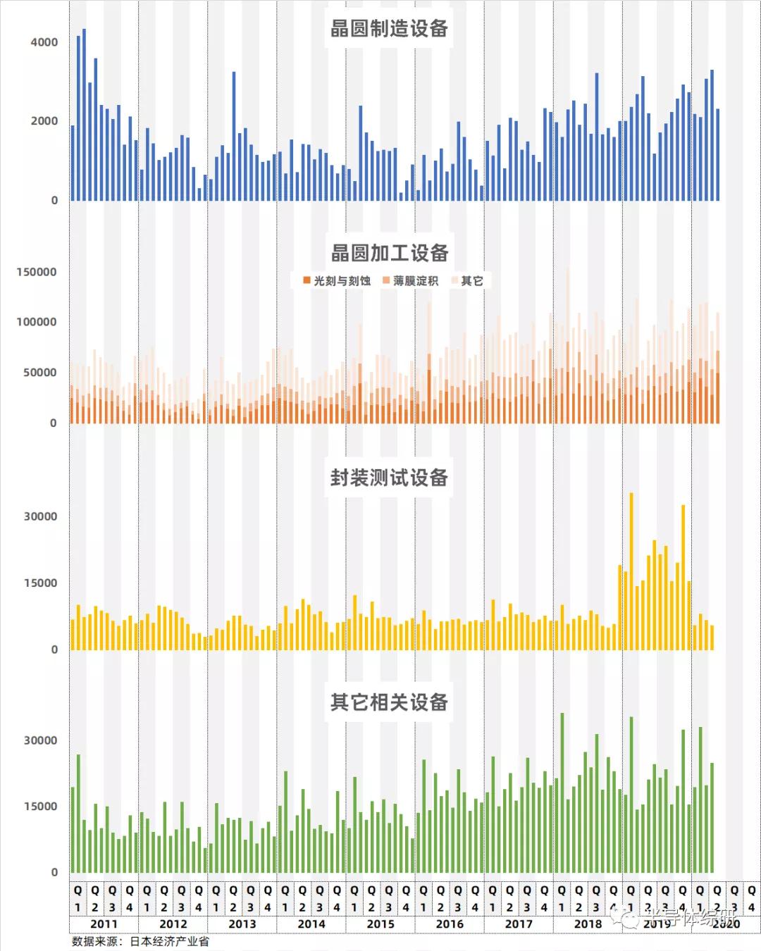 封装测试设备:产值55.06亿日元, 同比增长-64.84%