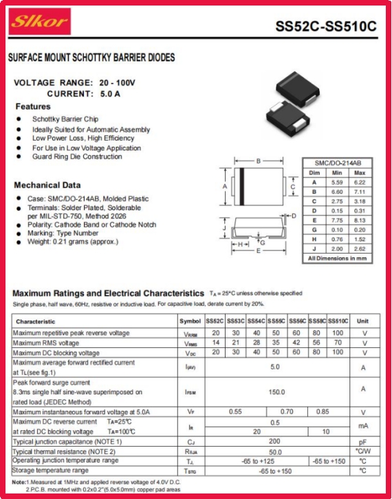 公海555000JC线路检测中心Slkor肖特基二极管SS54C
